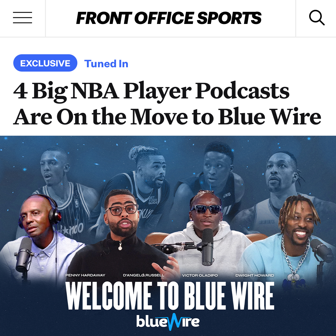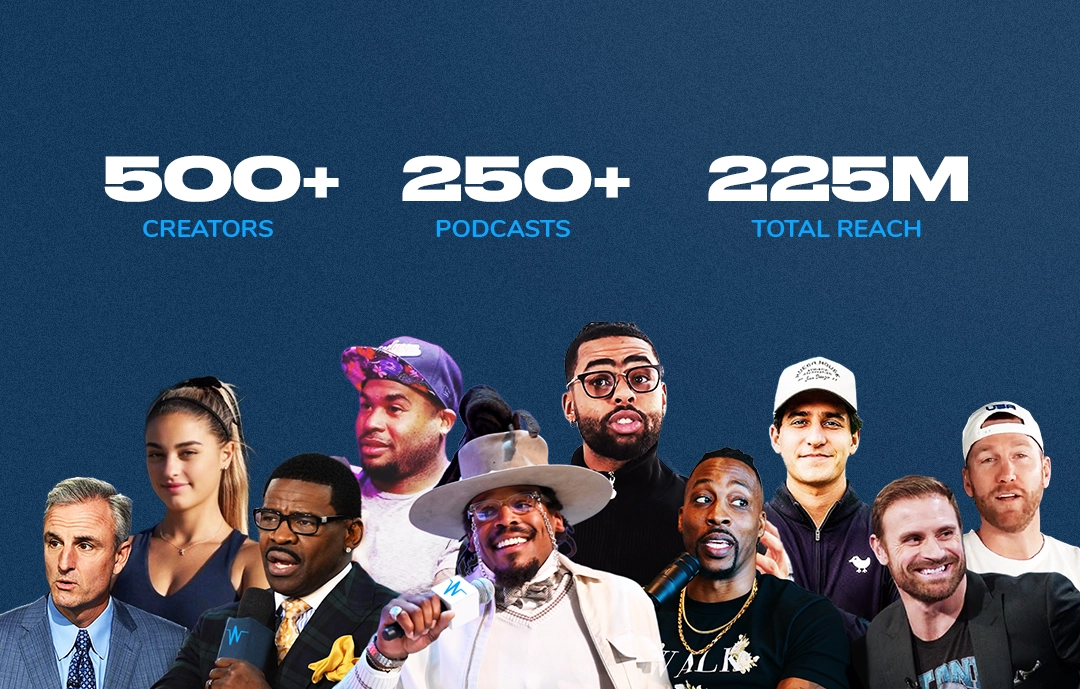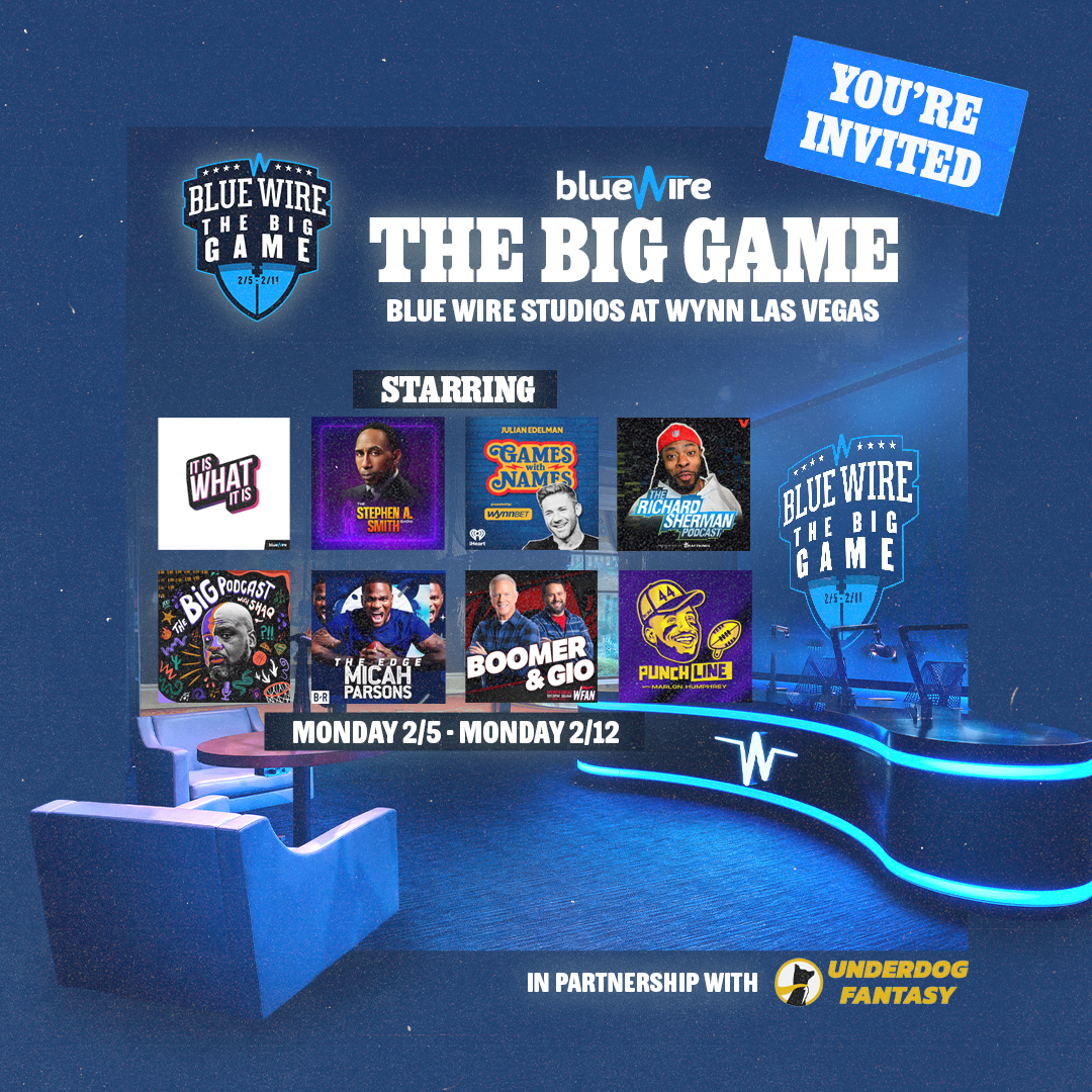 As Blue Wire grew, so did the scope of what I was asked to do. I've personally branded more than 100 podcasts in the network, developing visual identities for shows hosted by names like Cam Newton, Dwight Howard, Michael Irvin, Richard Jefferson, D'Angelo Russell, Darius Slay, Amon-Ra St. Brown, and Chris Long. The work evolved from quick cover art into full production asset packages — the kind of visuals that need to hold up next to professional talent and major media. Through each phase, I was also quietly doing something else: shaping and maintaining the Blue Wire brand itself. As the network expanded and the roster of shows diversified, keeping a coherent visual identity across hundreds of touchpoints became its own discipline. I managed that consistency for years, making sure the brand could flex to fit new shows and talent without losing what made it recognizable.