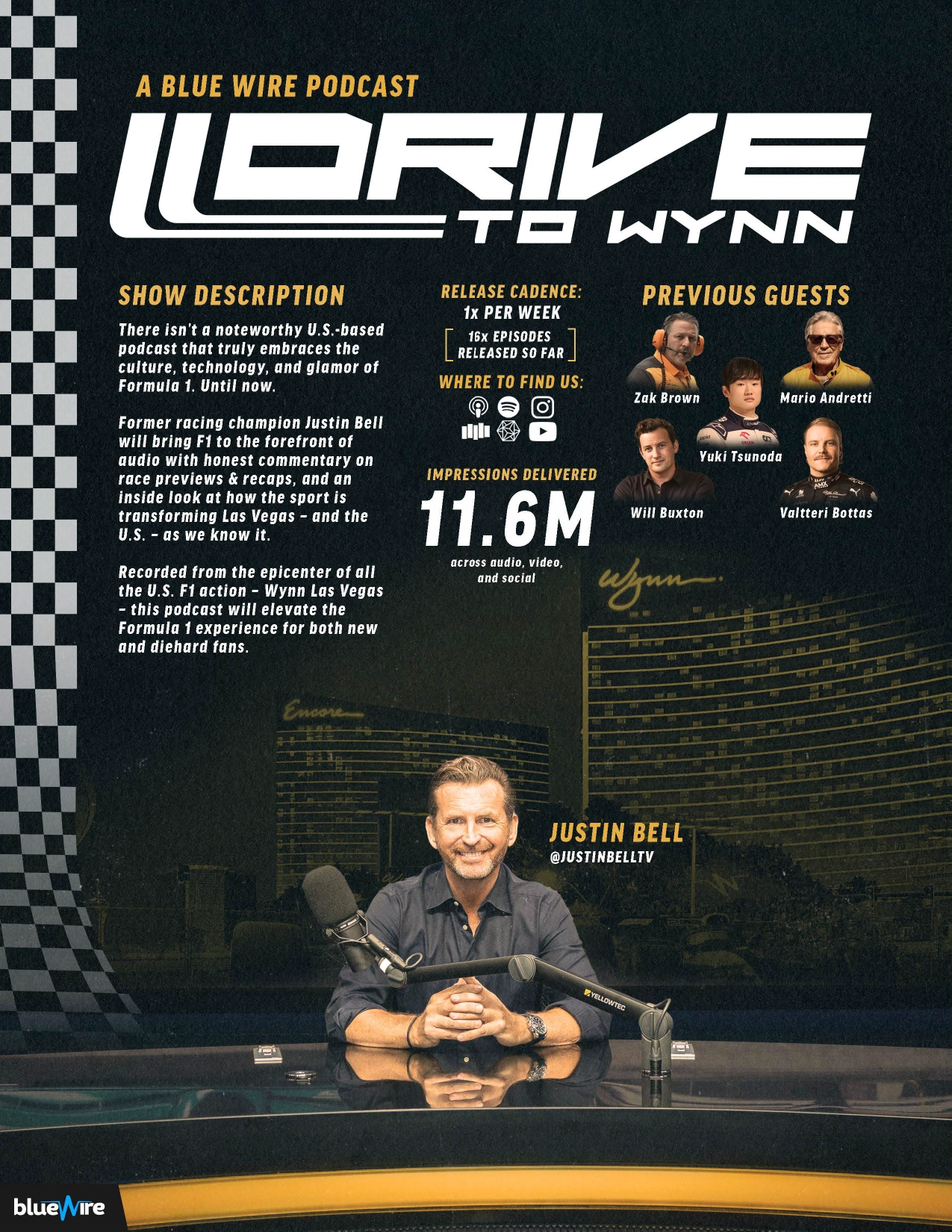 That stewardship has grown into a formal responsibility. Today, one of my primary roles is leading the design system and creative direction for the Blue Wire brand — building the frameworks and standards that keep the network looking unified at scale, and guiding the visual decisions that represent the business to partners, advertisers, and talent.On the business side, Blue Wire now supports more than 225 shows, 500+ creators, and 70+ brand advertisers including Coors, PrizePicks, Wonderful Pistachios, and BetterHelp — reaching an audience of over 225 million listeners. My work has grown with it into sales materials, pitch decks, and fact sheets that support revenue conversations, not just creative ones.